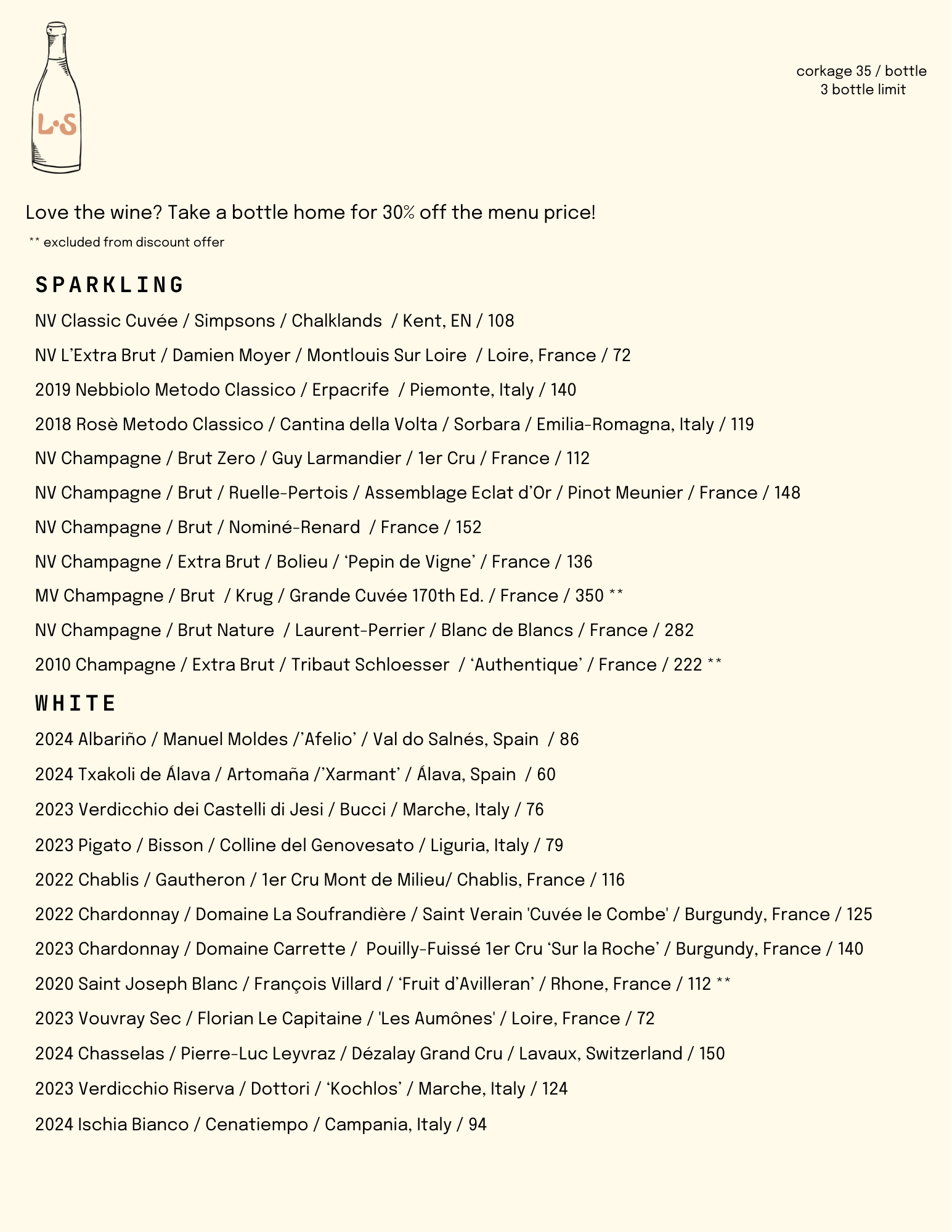regular menu