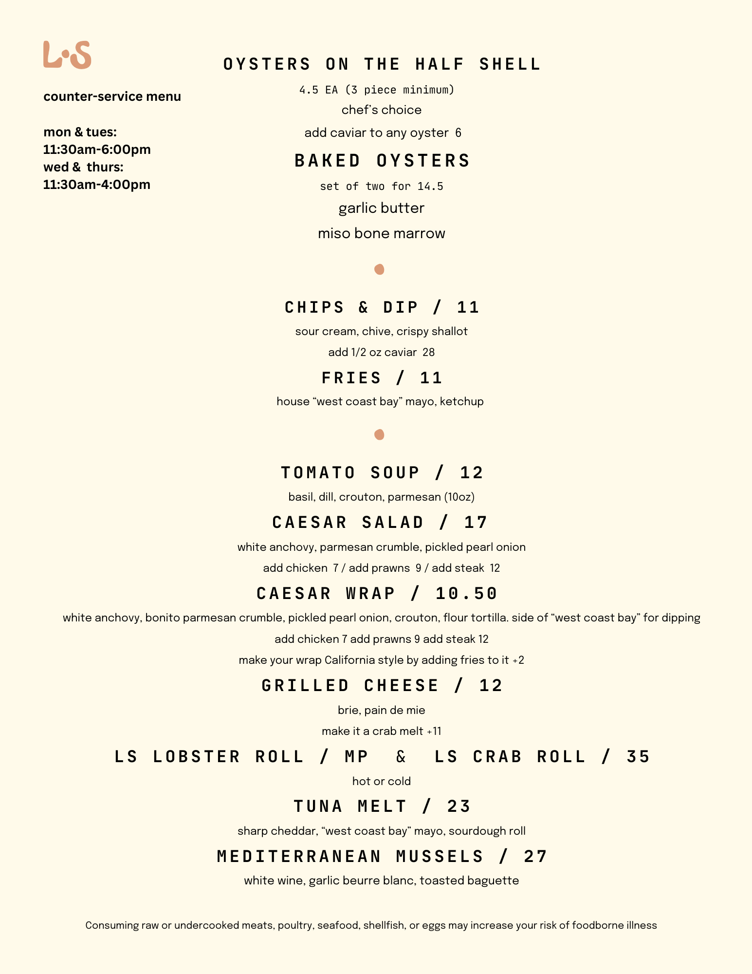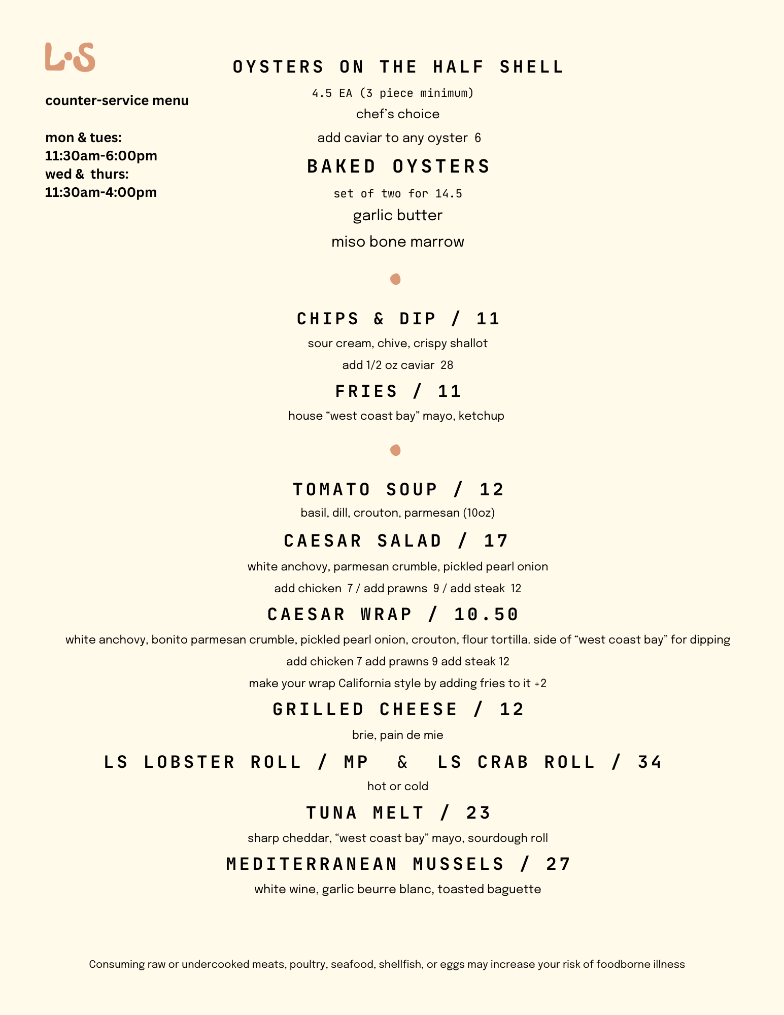 join us for counter-service dine-in or take-out. our cult-favorite caesar salad is available in salad or wrap form during these hours.